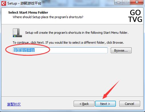 3、选择安装位置:默认是安装在C盘的。你可以点击路径后面的browse为游聚游戏平台选择一个合适的安装位置即可。设置好路径后点击next,如下图所示。