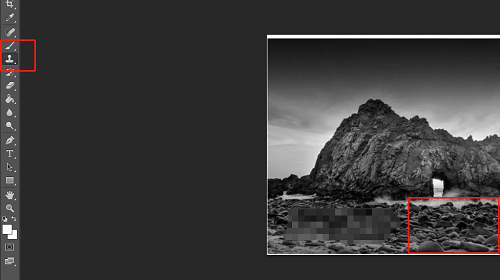 4.接着在页面左侧的工具栏中,用户找到仿图章工具,然后按下alt键选取没有马赛克的部分,如下图所示。