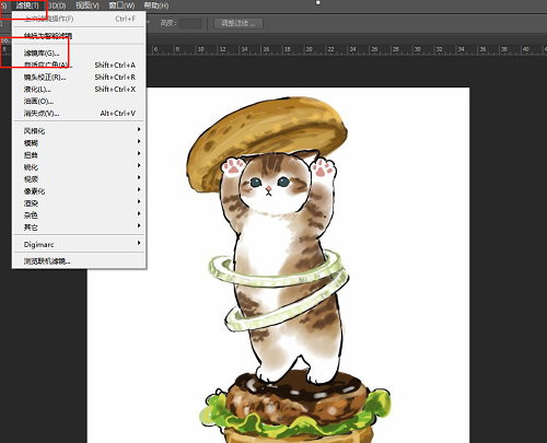 3.成功将图片打开后,用户需要点击菜单栏中的滤镜选项,在弹出来的下拉选项卡中,用户选择其中的滤镜库选项,如下图所示。