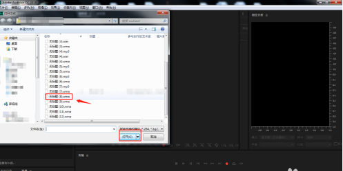 2、在弹出的导入文件窗口中,选择需要的音频素材,点击打开。