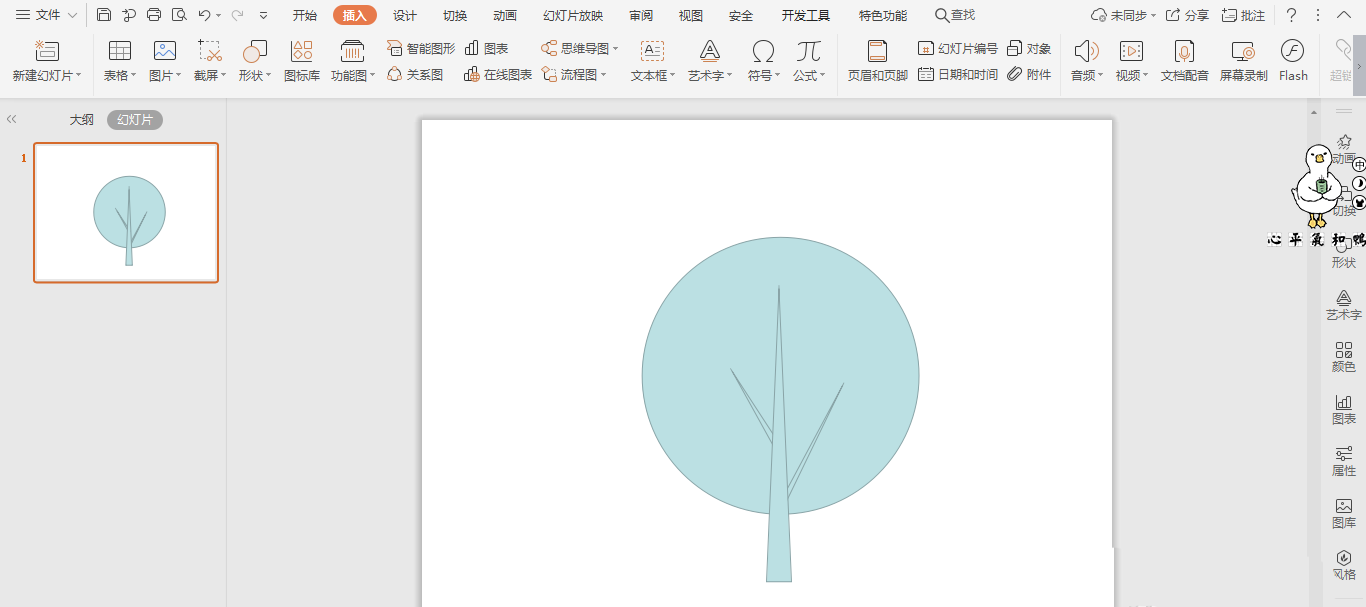 6、最后,在圆形中输入序号和标题,这样大树形目录样式就制作完成了。