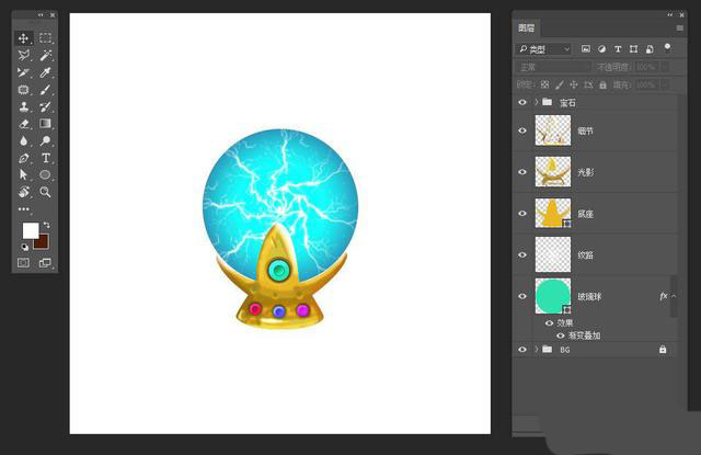 第七步:给底座镶上几颗宝石,选择椭圆工具,画个正圆,添加图层样式,如图
