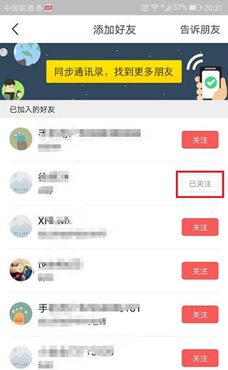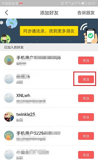 第四步我们可以看到在使用的好友,点击关注,加添加好友了,如下图所示: