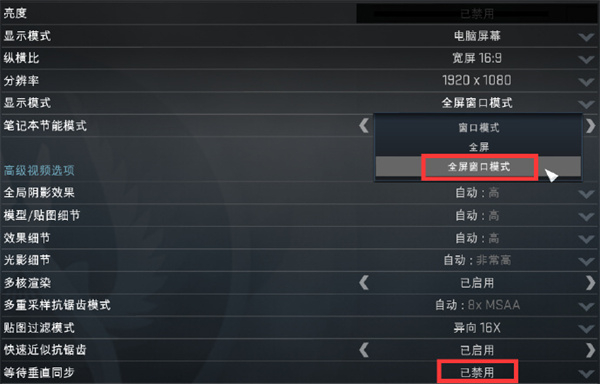3、最后一步!进入游戏,关闭垂直同步,把全屏改为无边框窗口全屏,因为全屏会有画面撕裂。