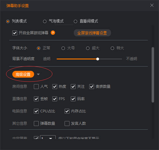 可以让你的弹幕助手显示房间、直播、电脑及其他信息,气泡模式与直播间模式没有此功能。弹幕助手目前可以屏蔽以下信息:这个就可以根据主播个人喜好来选择了。目前三种模式都可以屏蔽。