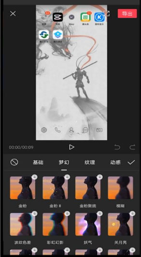4、在弹出的特效窗口,选择梦幻分类;