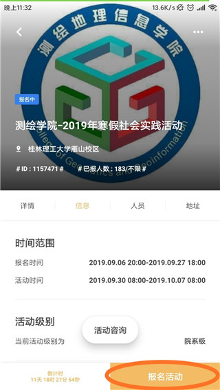 ①报名某个活动。