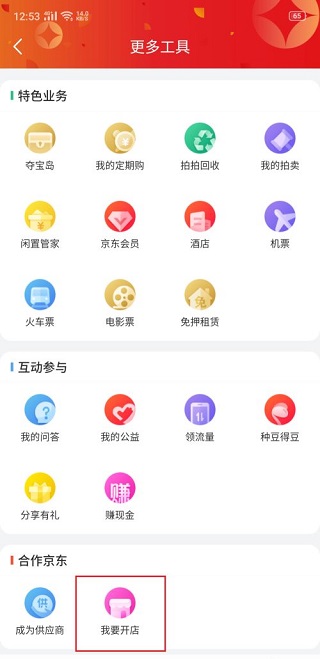 在此界面中,找到合作京东提示条,点击进入“我要开店”,我们就进入了开店界面,点击“马上入驻”即可