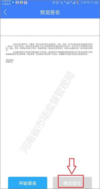 8、签名,输入验证码,检查确认输入的企业信息和个人信息。