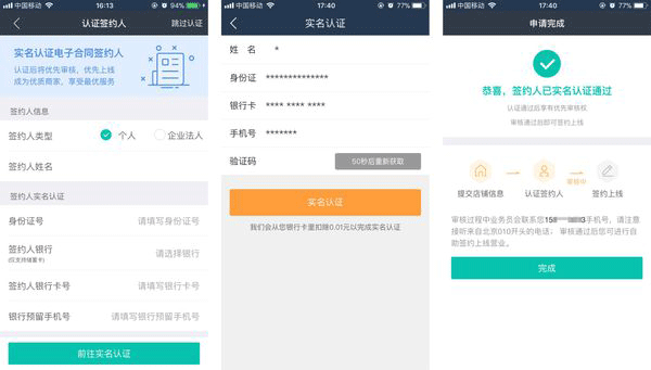 5、完成资料提交及实名认证后,美团工作人员将在1-3个工作日内进行审核,结果将会以短信形式发送到联系人手机上,注意查收。当您的店铺通过审核后会收到一条签约短信,根据短信提示完成线上签约即可登录开店营业啦!