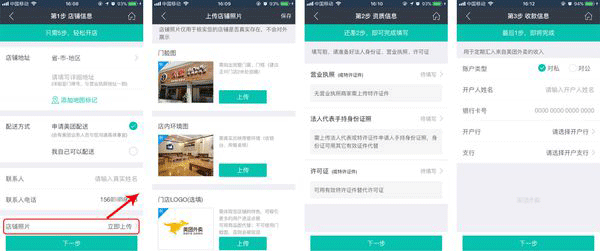 4、根据页面提示上传美团外卖开店所需照片凭证。