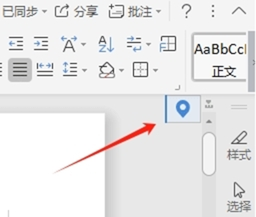 重新打开文档时界面右侧会出现蓝色图标。
