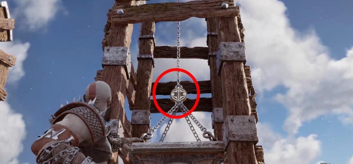 在《战神5》中,玩家在部分地图会看到这种起吊机,起吊机的绳索上会有一个靶子。