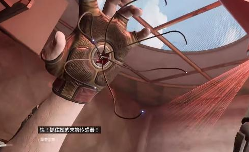 3、紧接着我们将左手与它的末端传感器相连接,成功后就能解除攻击状态。