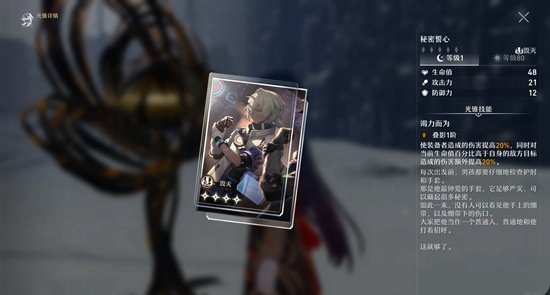 2、四星光锥推荐“秘密誓心”,血量越少伤害越高,非常适合压血。