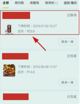 3、进入在我的订单界面后,查看所有的KFC历史订单。