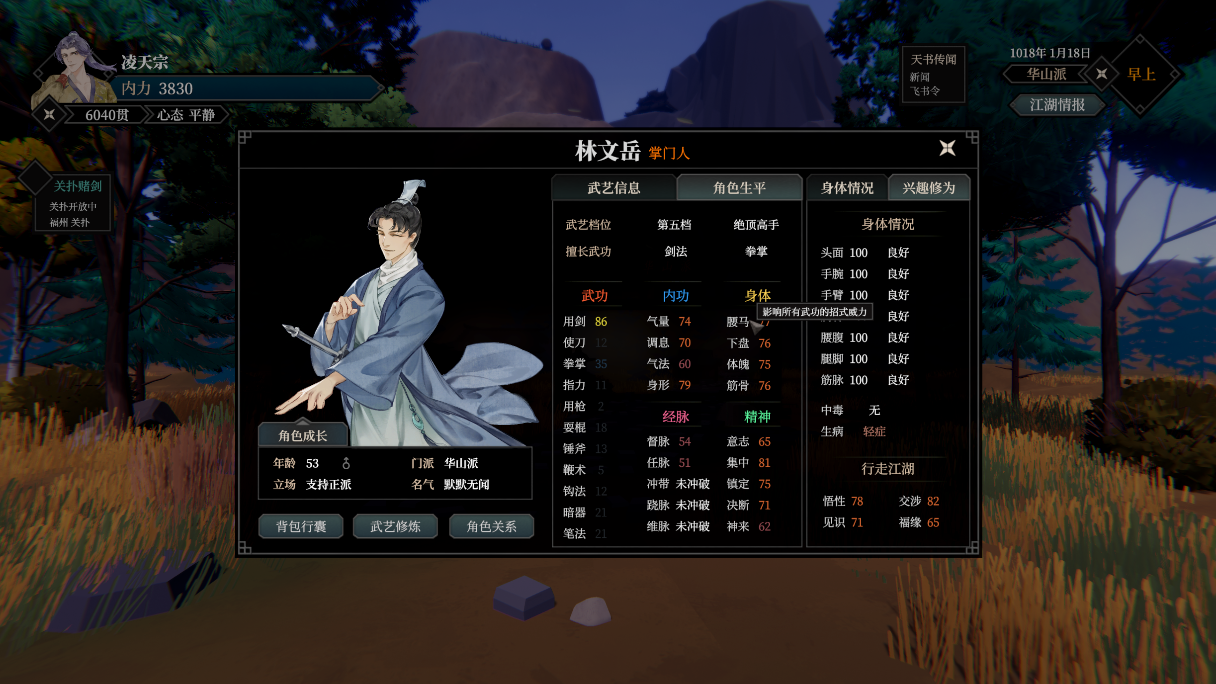 青城派(成都府路)、峨嵋派(成都府路)、南阳拳庄(京西南路)、武当派(京西南路)