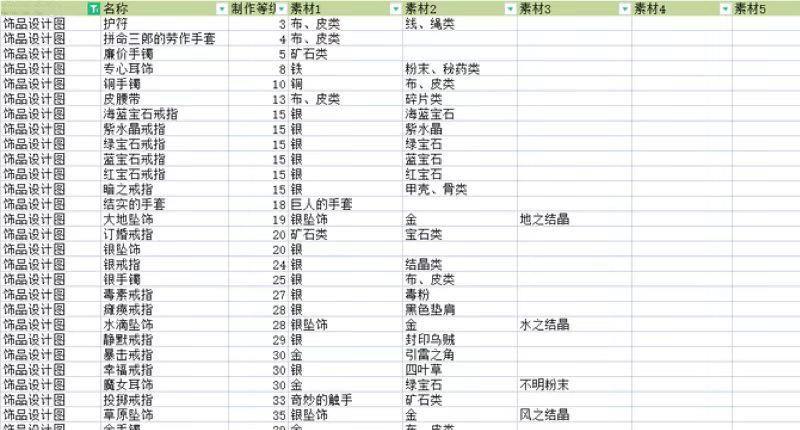 防具配方分别为盾、帽子、鞋子、铠甲、饰品,具体配方如下: