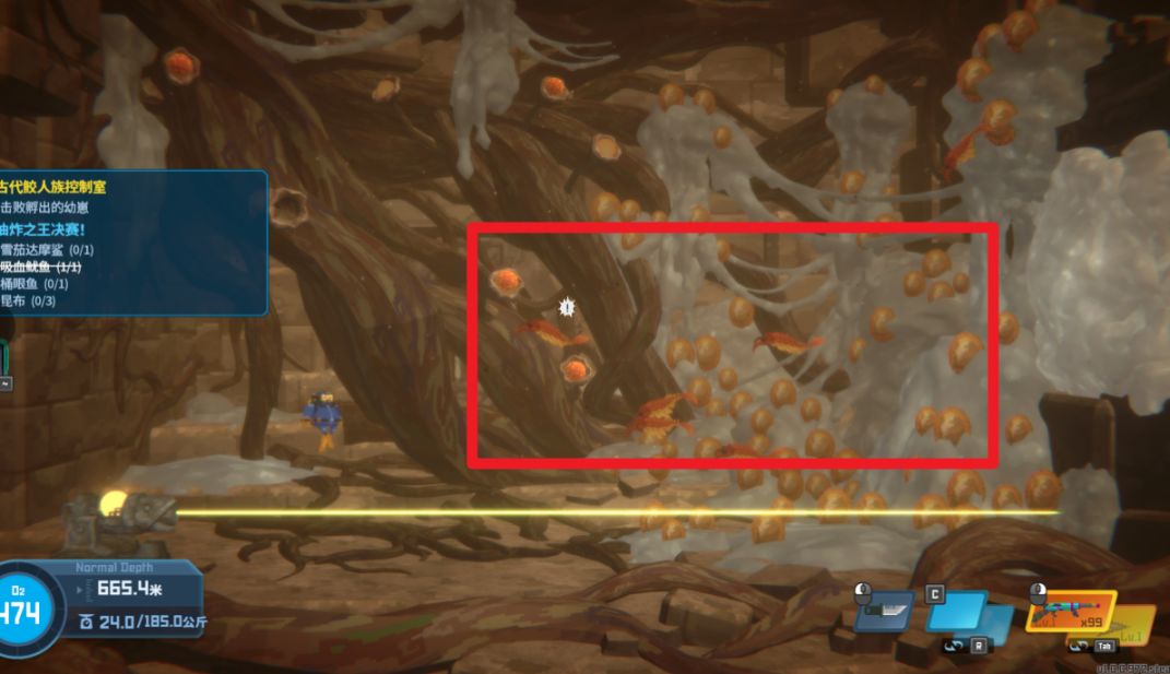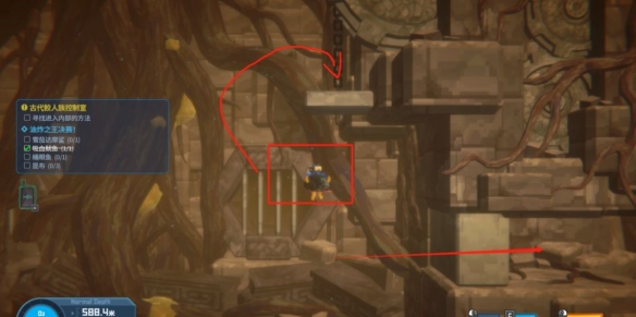 游到最底部,将甲壳虫抱起放在石板上,在其爬下来之前,快速进入石门