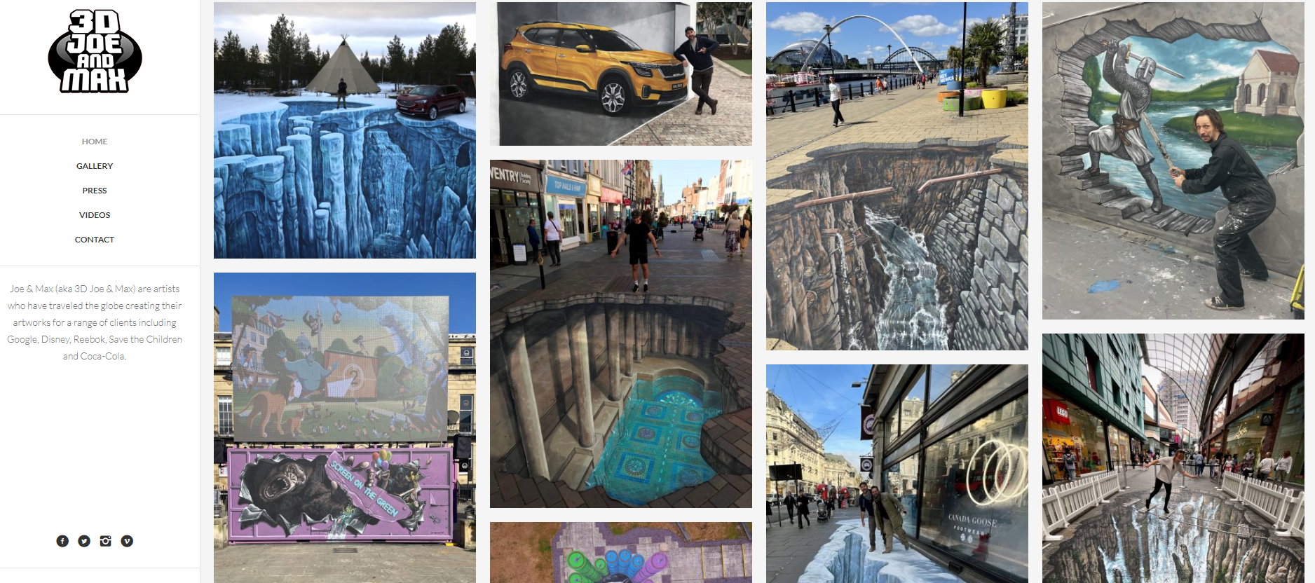 网站是由一对来自英国的创意组合创建,他们在许多国家地方创作了大量非常具有视觉冲击力的街头3D艺术作品,大受震撼。
