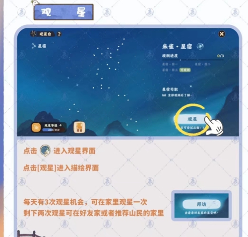 必须要每天观星成功三次之后就能入拓,简单来说就是就是自己家观星一次,去别人家观星两次,一共三次,完成任务。