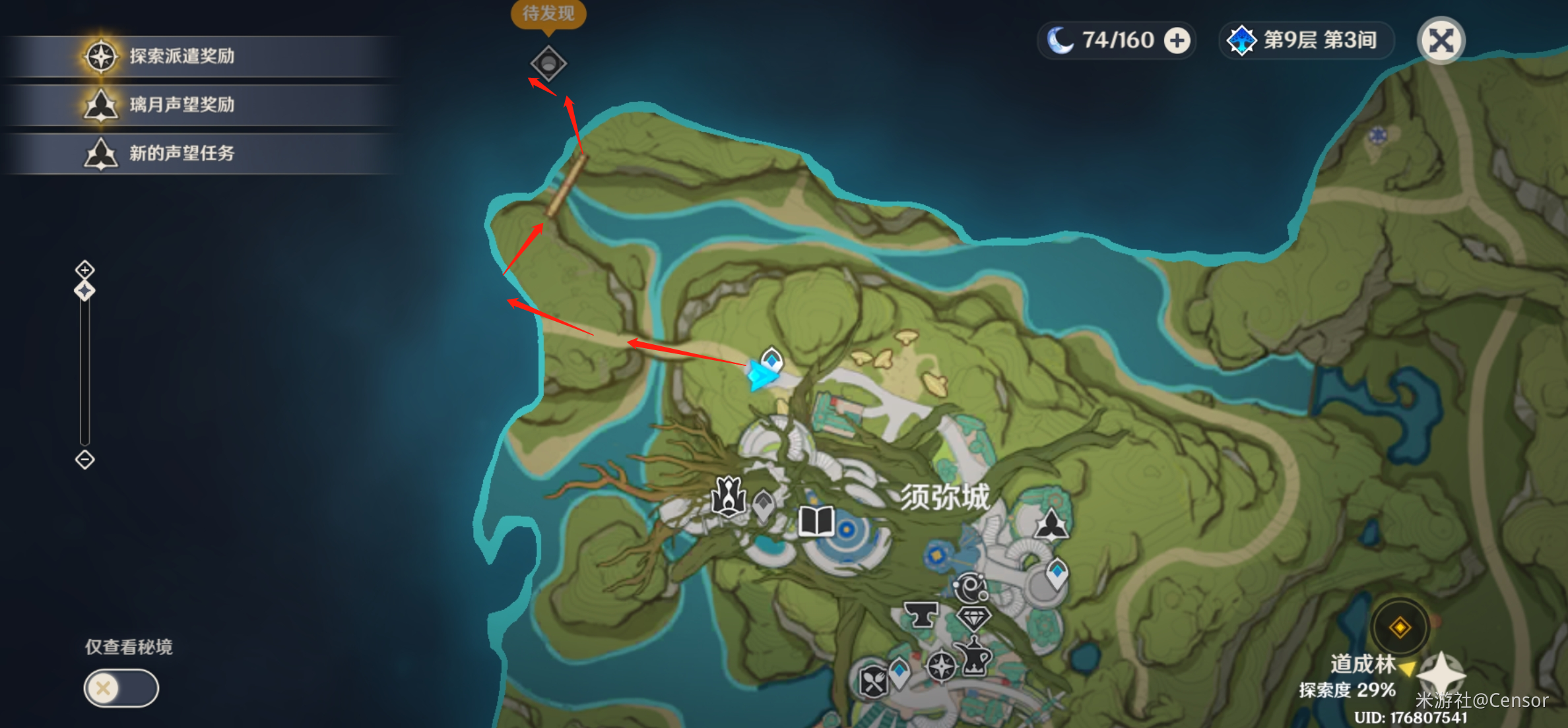 须弥城北边,无需解谜,与大门互动即可解锁秘境