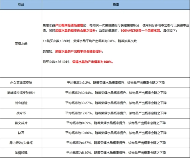 荣耀水晶抽取: