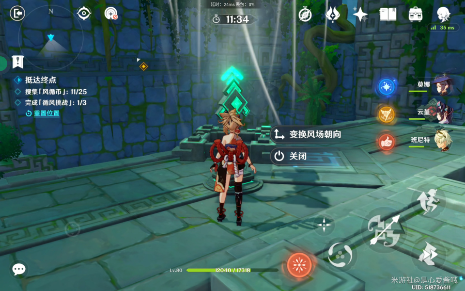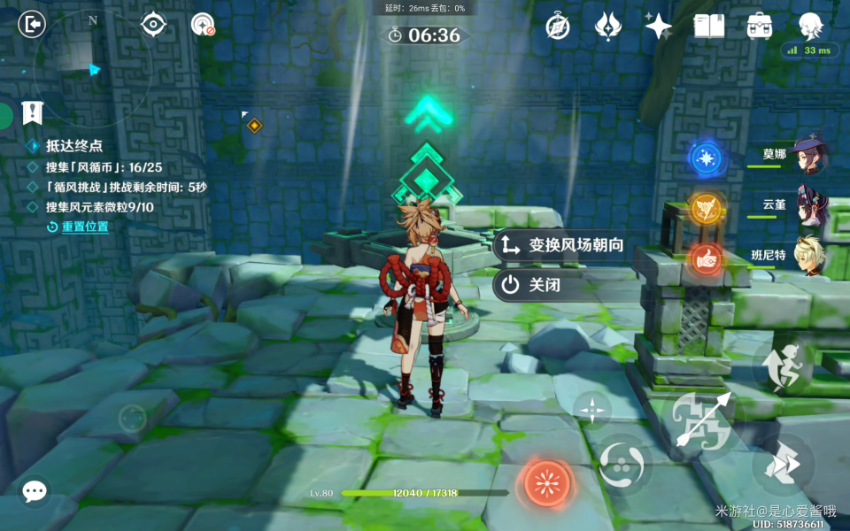 关闭风场,捡风球开始挑战,快速绕一圈即可