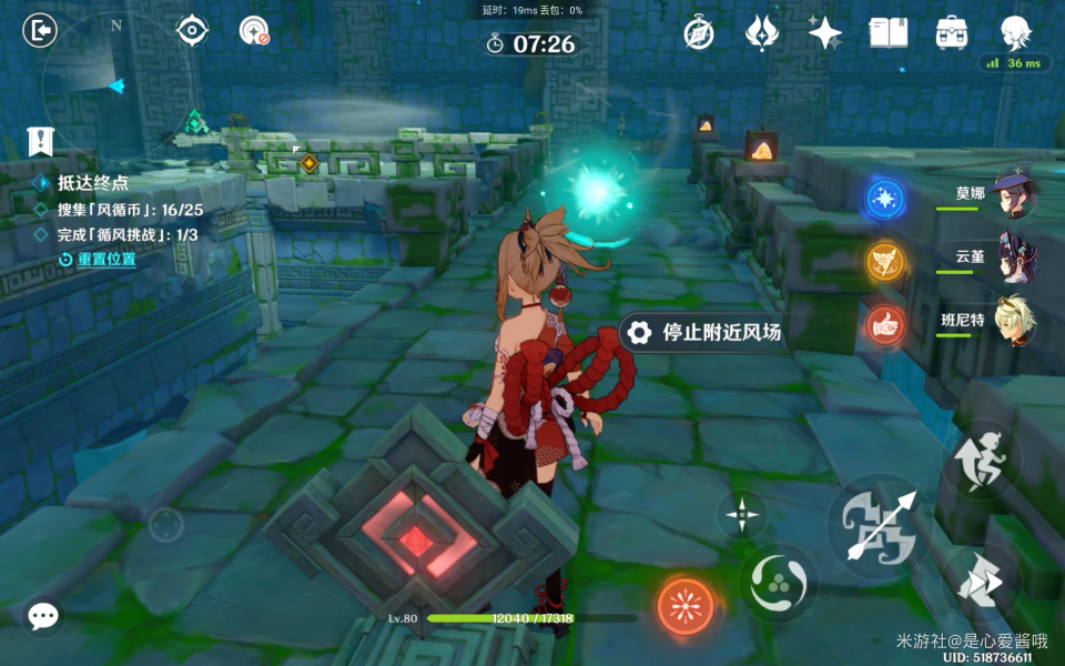 拿完风循币后飞到下面,停止附近风场,捡风球