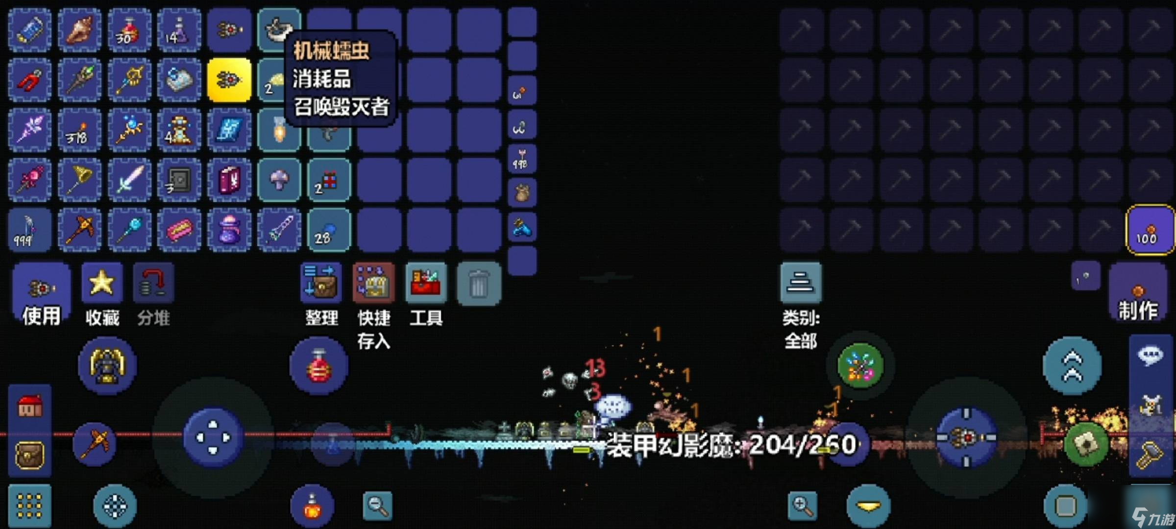 除了装备与药水,道具和地形搭建也能关键。移动道具里翅膀、克苏鲁之盾、迅捷之靴都是必备。辅助道具带心灯、篝火、蜂蜜池,能增强回血效果。地形上建议搭建200格的长直半空平台,避免地面干扰。对付双子魔眼时,铁轨矿车系统能让风筝战术更高效。机械蠕虫的战斗中,可在平台下方放置尖刺陷阱,能对其造成额外伤害。