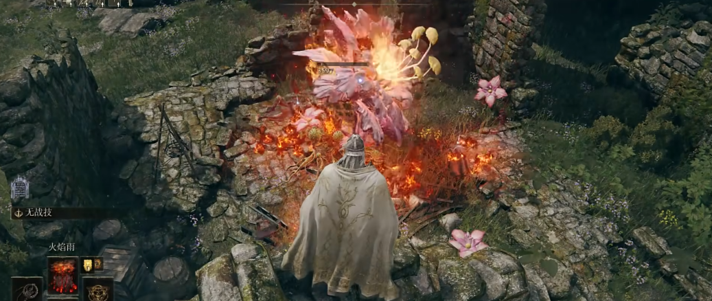 火焰雨是黄金树幽影里新增的一个火焰祷告,自己要是有兴趣走一个火系流派存档的话,那这个技能就很值得自己专门跑一趟去拿。它不是什么小打小闹的火苗,而是能在天上召唤出一片燃烧的云,在一段时间里对着地面狂轰滥炸下起大范围的火焰雨,这个效果一看就知道去清群怪时会特别爽快。想学会这招得去幽影城西边的城墙那块地方,在那会找到一个叫火焰骑士萨赞的敌人,路线是先从西方城墙那个赐福开始走,然后一路过桥到城墙对面就能找到他。