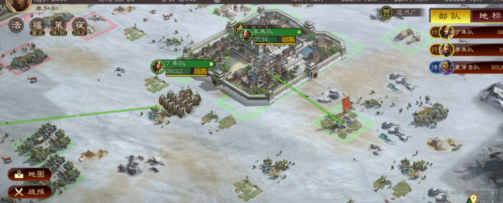 发展城池最关键的是平衡资源产出与军事需求,必须优先保障基础资源的稳定供给,粮食用于维系士兵与人口的增长,木材、石材和铁矿则是升级建筑和研发科技的基础,而金钱则贯穿于建设、招募与装备购置的全过程。资源的积累直接决定了主城升级的速度与部队扩建的能力,所以要时刻关注各项资源的存量,避免因单一资源的短缺而拖慢整体发展节奏,同时要根据当前发展阶段灵活调整资源分配策略,不能一味追求单项资源的过度储备而忽略其他资源的同步跟进。日常管理中还应该通过屯田、占领资源地等方式持续拓展资源获取渠道,只有资源充足才能为后续的城池防御与军事扩张提供坚实支撑。