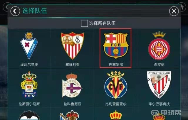 5.进入到选择队伍页面中,在这里找到巴塞罗那球队。