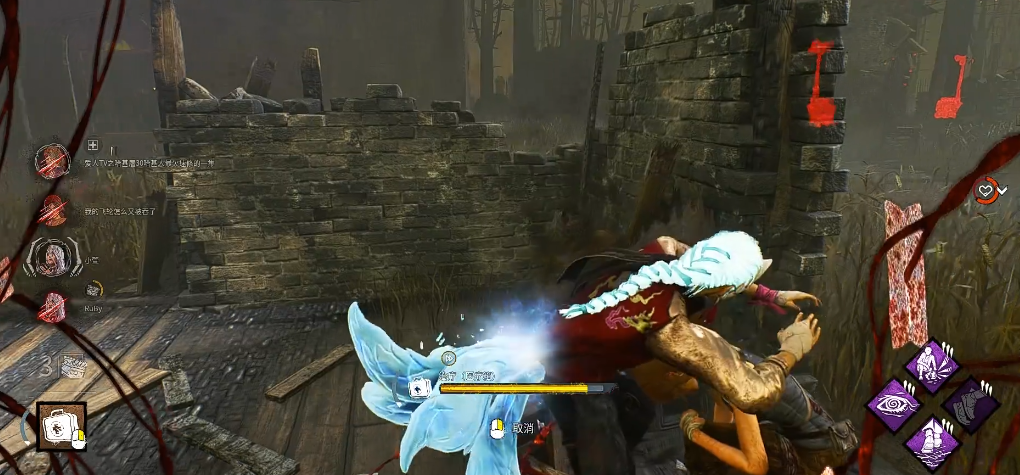 这个操作后续有60秒的cd,另外自己还能一直看到所有已放下木板的气场,平时不惜一切在实战中需要看时机,用的好可以重新夺回一个关键板区的控制权打乱杀手的节奏。但因为它读条时间不短,在杀手紧追不舍的时候很难有机会用出来,所以用起来就更考验自己对局势的判断。