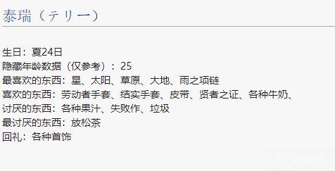 19.泰瑞,可以选择:雨之项链劳动者手套、结实手套、皮带、贤者之证、各种牛奶、