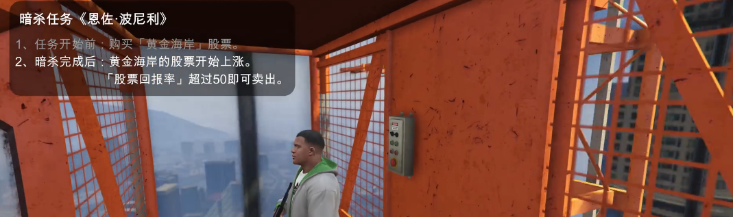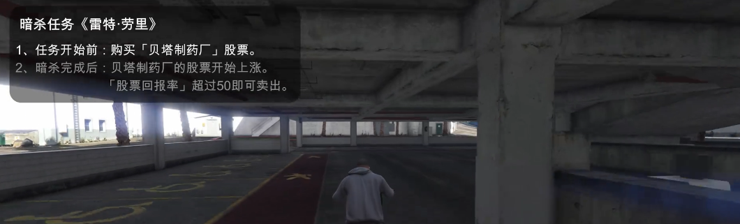 通过暗杀任务操纵股市是效率最高的刷钱方式之一。莱斯特会指派五个暗杀任务,每个任务都会对特定公司股价产生影响。例如完成酒店暗杀任务后贝塔制药股票上涨约80%,而红木烟业股票会在多重暗杀任务后暴跌。玩家需在任务前将全部资金投入目标股票,待涨幅达到峰值后抛售。建议主线任务完成后保留暗杀任务,以获得更充足的初始资金进行操作。