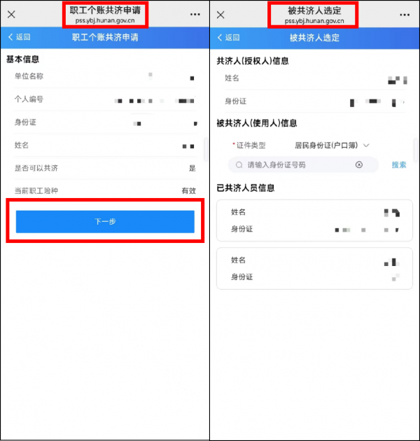 2.绑定亲属关系:在经办业务版块点击“家庭共济”进入“个人账户家庭共济”页面,点击“职工共济申请”按钮,添加家庭成员信息进行绑定。绑定的家庭成员必须为湖南省内正常参加职工医保或居民医保的参保人,一名职工参保人同时可绑定10名近亲属,累计可以绑定20名近亲属。