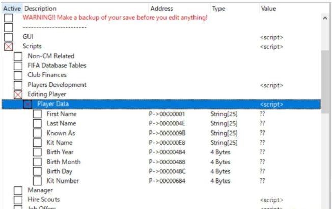 1、先回到CE修改器,打开EditingPlayer --> Player Data,会发现属性值都是问号,没有关系。