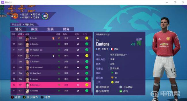 1、里就要让克隆功能登场啦。我们先在游戏里进入阵容--> 球队中心,把高亮停在我们刚提拔上来的“坎通纳”上。