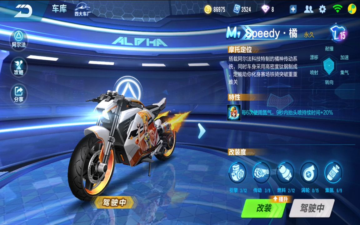 摩托车有灵活的转向手感,在复杂赛道里很容易找到超车突破口。而要真正发挥摩托车的潜力,抬头喷这个进阶技巧绝对不能错过。触发抬头喷其实并不复杂,开启氮气加速后,在氮气还没结束的这段时间里,只要点击一下刹车键就能激活它。