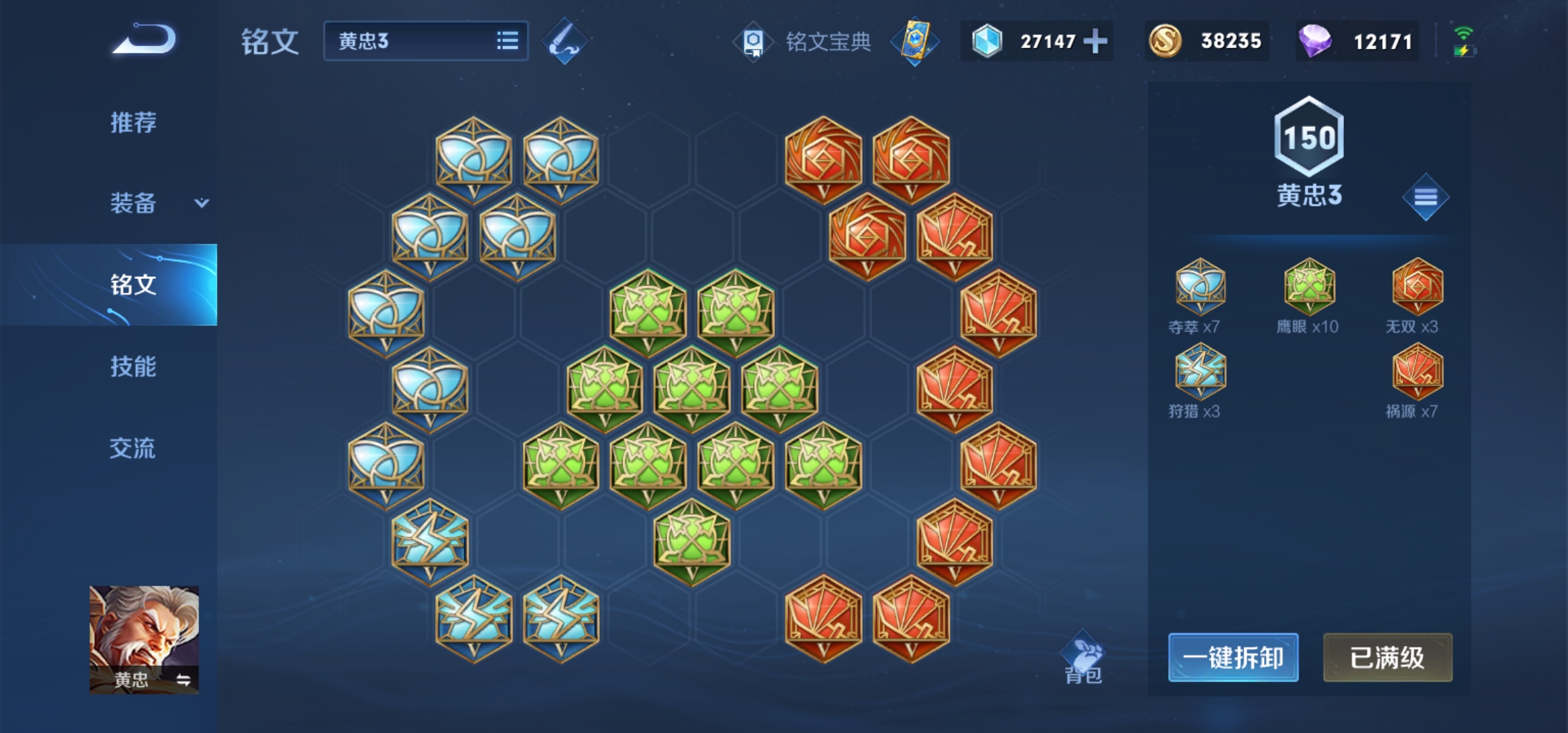 谈及黄忠的铭文选择,主流搭配都围绕着暴击率、物理吸血和物理穿透这三大核心属性展开,一套经过实战检验的铭文方案是红色选择十个祸源提供可观的暴击率加成,蓝色选择七个夺萃与三个狩猎的组合,这样既能保证前期的续航能力,又能获得一定的机动性,绿色则固定为十个鹰眼来提升物理穿透,这套铭文让黄忠一级上线就拥有不错的换血资本,祸源的暴击率配合被动的叠加效果,往往能在早期对拼中打出意想不到的优势,夺萃提供的物理吸血则减少了对线期的回城频率,狩猎的移速和攻速虽然不多,但配合一技能的加速效果,显著提升了黄忠的拉扯能力。