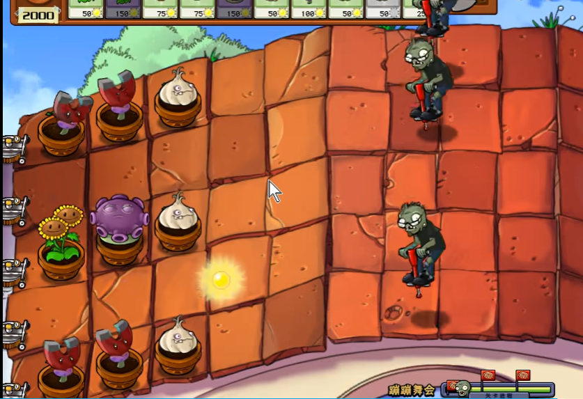 要说跳跳舞会这个关卡,最大的特点就是会遇到很多拿着弹跳杆的跳跳僵尸,它们能够轻松跳过普通的植物直接前进,所以防守思路和普通关卡完全不同。你必须准备好能够克制这种特殊僵尸的植物,比如高坚果可以直接挡住它们的去路,或者用磁力菇吸走它们的弹跳杆。开局阶段一定要抓紧时间种植向日葵来积累阳光,为后续布置防线做好准备,同时记得在最左侧给窝瓜留出位置,这样可以缩短它的冷却时间。