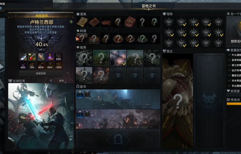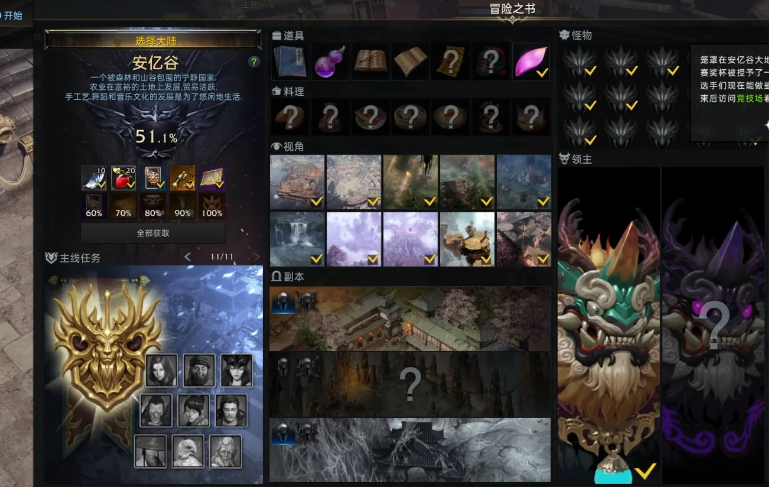 冒险之书是记录你在每个大陆探索进度的关键系统,通过收集隐藏物品、完成特殊任务和挑战来解锁丰厚奖励。它能帮你梳理游戏内容,确保不会错过重要收集要素,同时提供额外的技能点、金币和稀有道具。冒险之书包含多个板块,比如隐藏剧情、料理图鉴、观景点和怪物图鉴等。