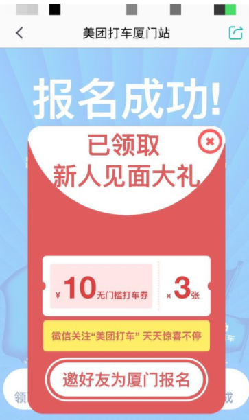 美团打车优惠券领取方法: