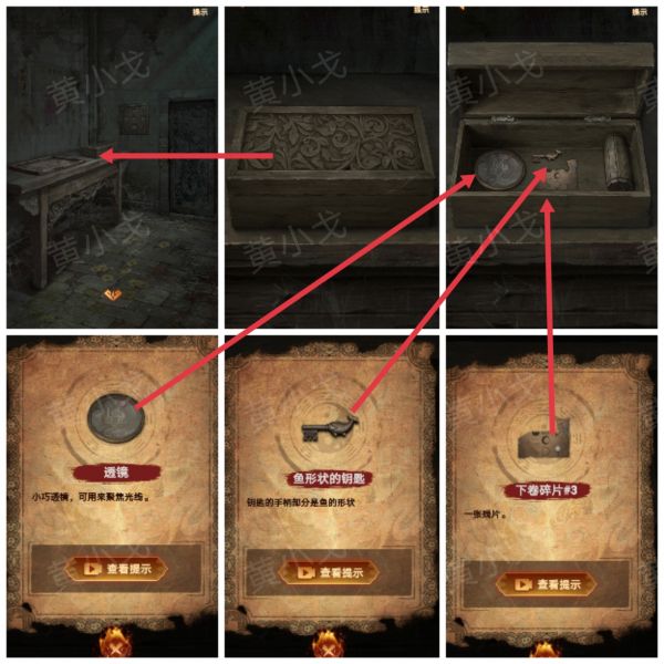 22、把放到木托盘上,与另两张碎片拼合起来,获得线索