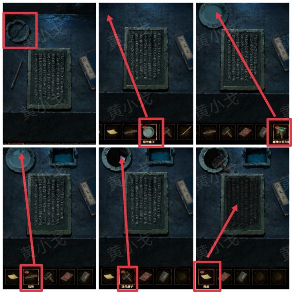 31、点击石桌,拿开破砚台,放上,倒入,放入和,铺上