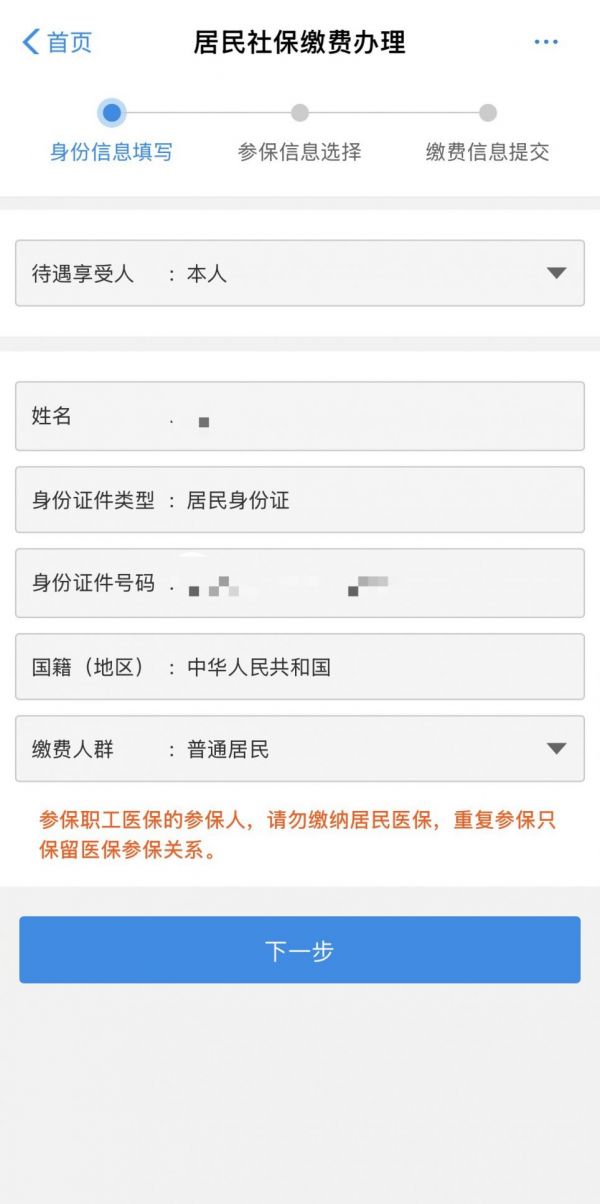 第四步:参保信息选择。