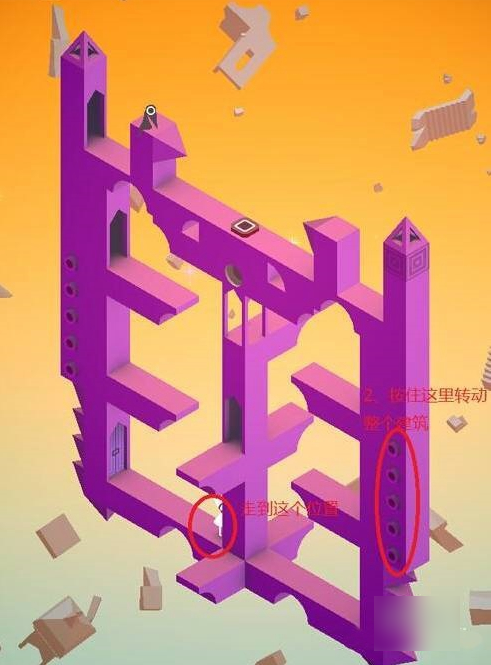 4、然后旋转紫色建筑,根据提示走向 3 层。