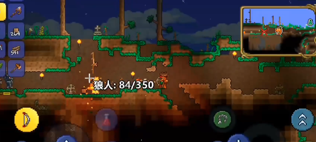 狼人攻击性挺强的,它会开门,还能跳起来扑你,一不小心就容易中招,它还有几率让你进入流血状态。所以装备得准备充分点,建议用一些攻击力高的武器。有个特别有用的信息是,银子弹对狼人能造成三倍伤害,如果你玩的是远程,用这个会轻松很多。战斗时可以借鉴早期打僵尸的策略,比如造个安全的小屋子,开个小孔用远程武器慢慢打,这样比较稳妥。如果你想提高刷怪效率,可以用水蜡烛或者喝战斗药水,这能增加敌怪生成的速度。