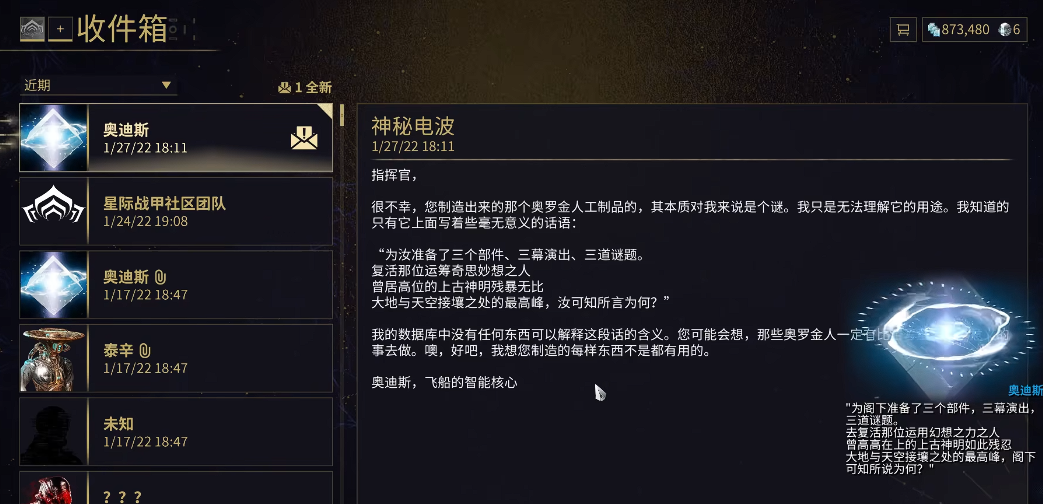 当你把任务道具制造好之后,任务并不会立刻在地图上弹出一个巨大的标记。正确的方法是,你需要按ESC打开菜单,选择任务选项,然后在你的任务列表里找到神秘电波并选择开启它。这时候游戏才会通过收件箱,向你发送第一条包含谜语的信息。这个谜语是整个任务的关键指引,它会用神话典故来暗示你需要前往的星球和节点。很多新手会卡因为直接跑到某个星球是没用的,必须通过收件箱里这条任务提示来激活对应的节点,节点上才会出现神秘电波的特殊标识,进去完成任务才能拿到奖励。